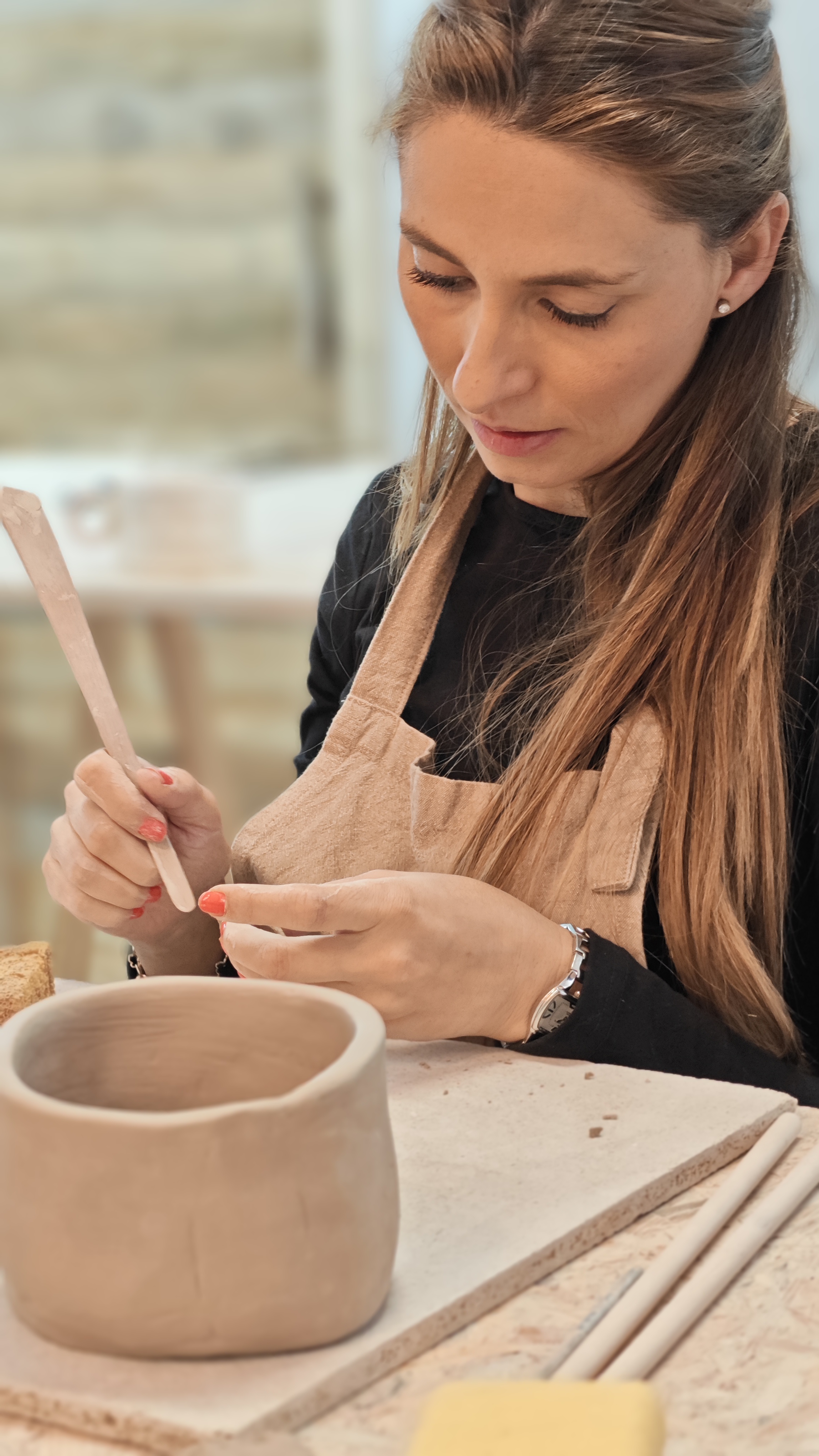 Durante las 3h que dura el taller de cerámica, crearás una pieza con técnicas de modelado manual. Te animaré a que des rienda suelta a tu imaginación mientras experimentas y decoras tu creación modificando la superficie, añadiendo o extrayendo material. Puedes pintar, crear texturas…
